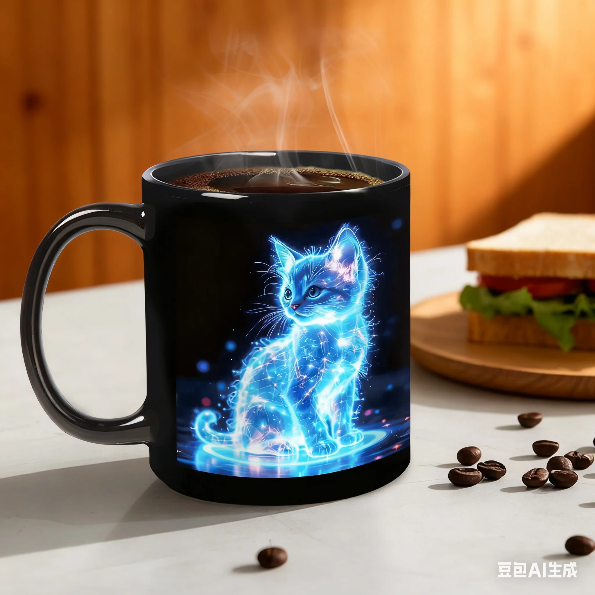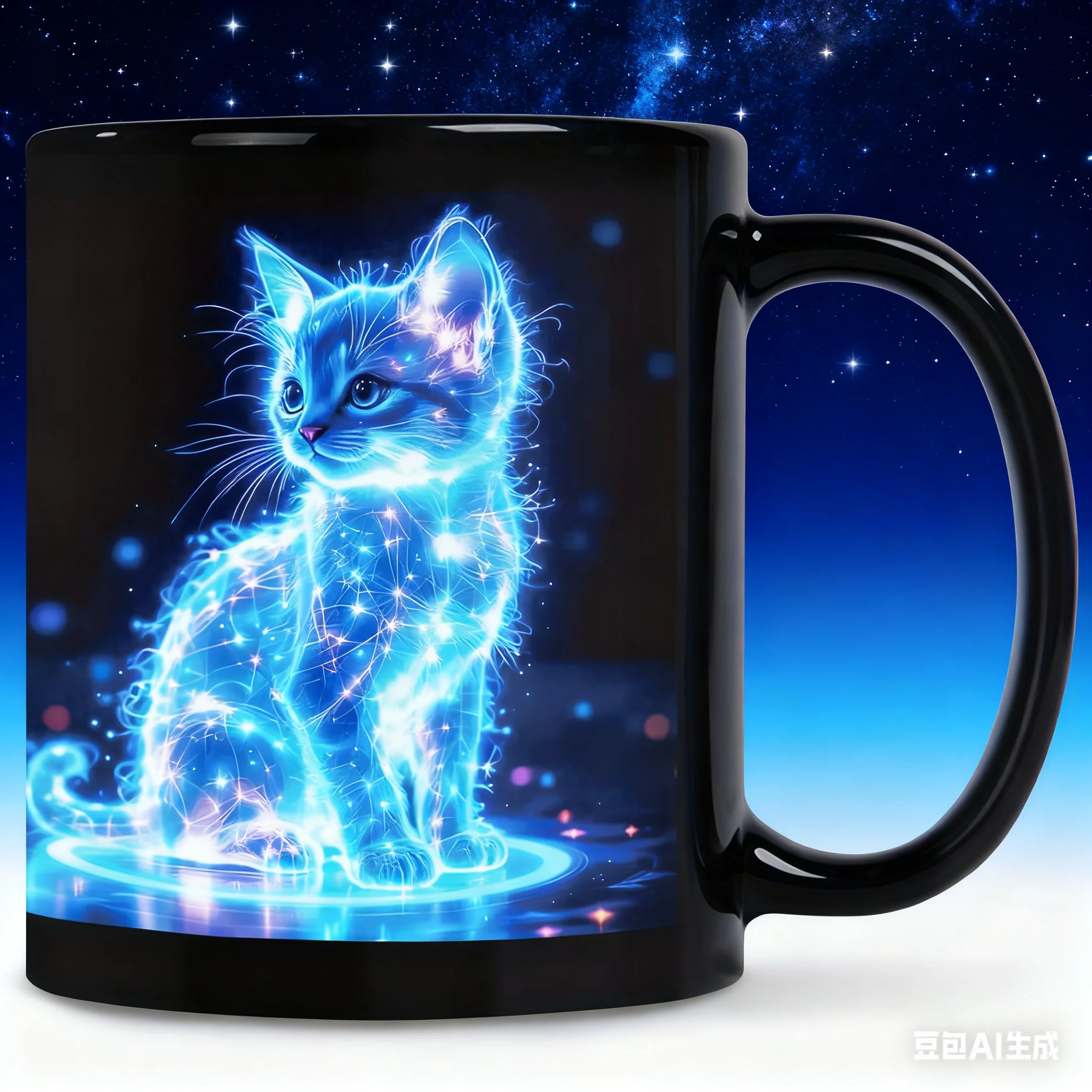Design: The cup features a starry sky-themed glowing cat design, creating a dreamy and futuristic visual effect. The design is printed on both sides, ensuring consistent display.