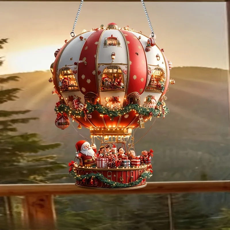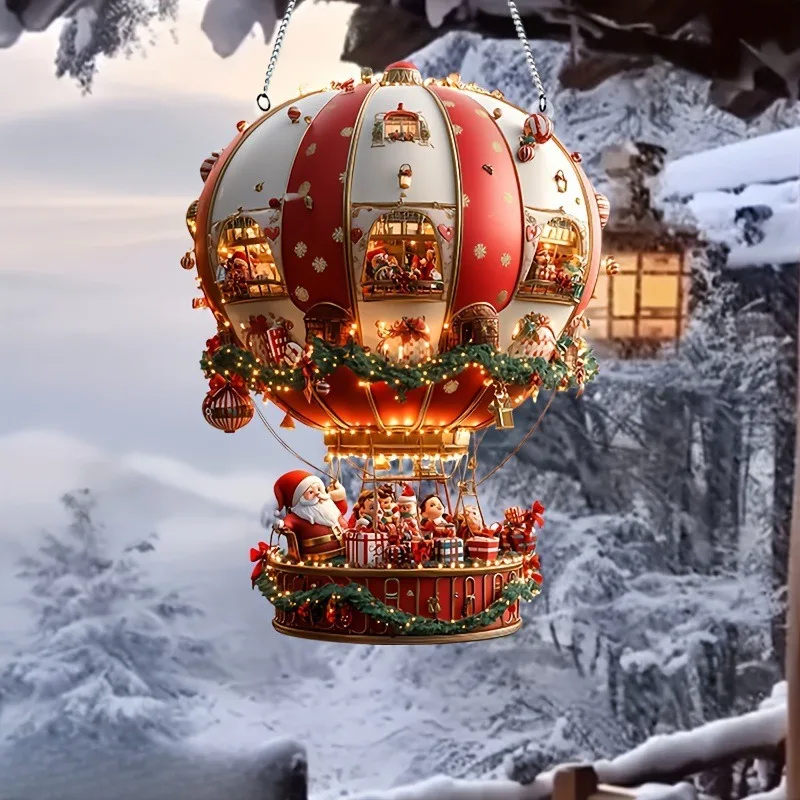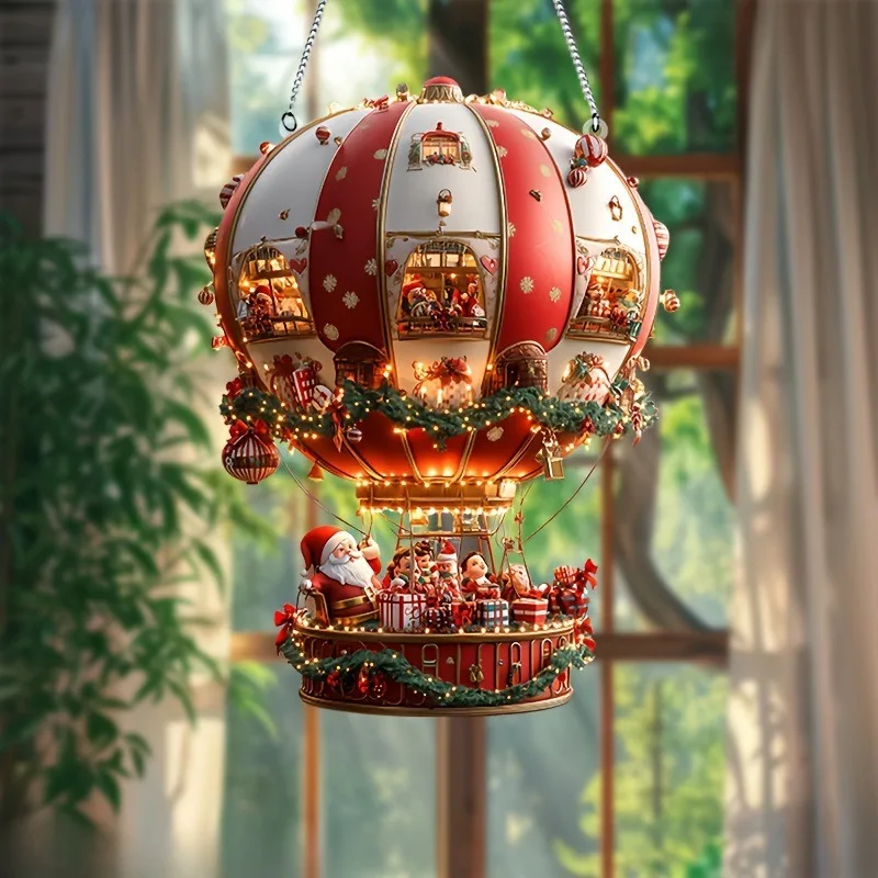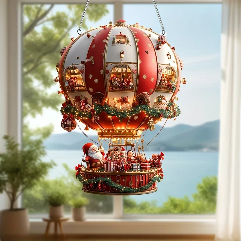 Santa Claus gifts fire balloon Desk Ornaments 2D Flat Acrylic Design For Home Office Indoor/Outdoor Xmas Day Big Decoration
