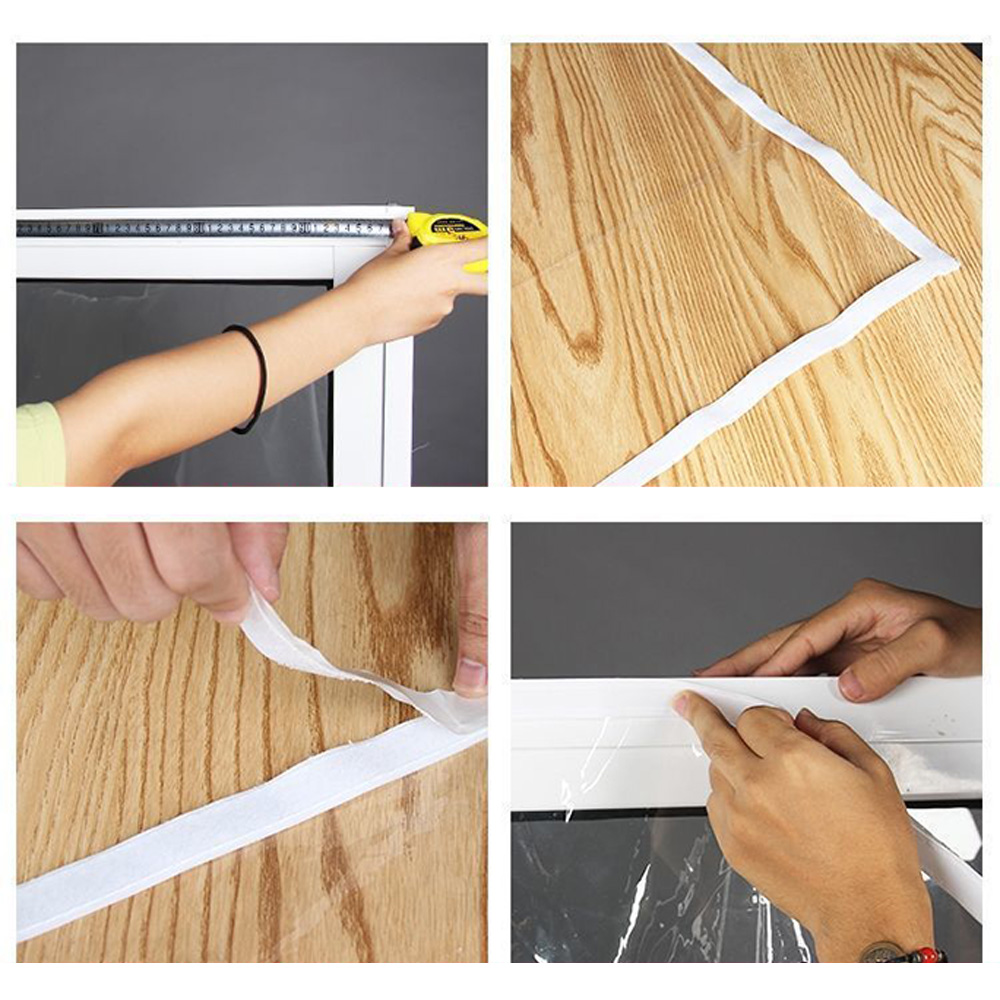 Optional Size: This product includes a piece of 120*160cm or 160*160cm or 180*200cm transparent film and a roll of 2.5cm wide tape, and a roll of hook tape. Measure the size, including the picture frame, please choose the heat insulation film a little bigger than your window.